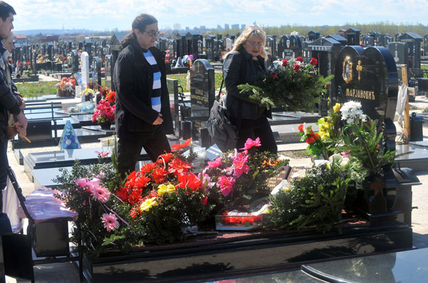 Vladimir Marjanović i Vera Vukomanović na grobu Jelene Marjanović Foto I. Marinković Foto I. Marinkovć