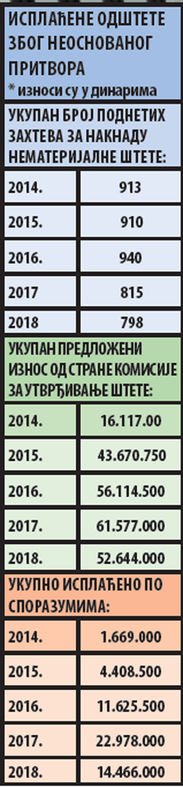Pročitajte još: Nevinima u pritvoru odšteta 40 miliona