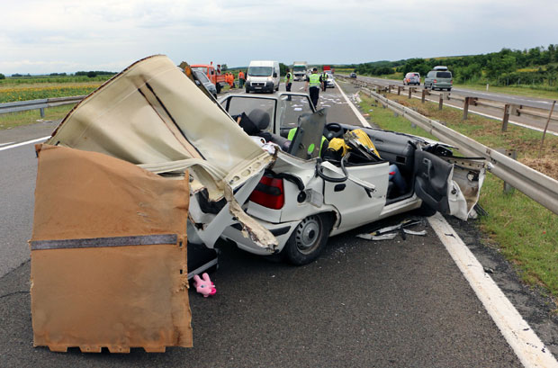 Smrskani automobil Foto N. Živanović