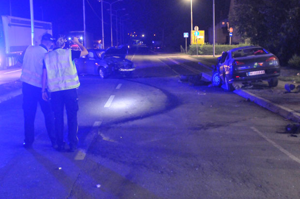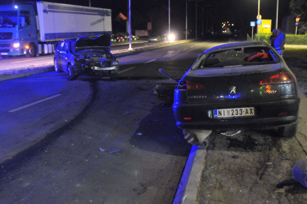 @Земљорадник - Udes se dogodio tako sto je vozac,opel astre vozio oko 90-100kmh (ogranicenje je 50 na tom putu) ali vozac pezoa iz istog pravca,koji je vozio iza njih bukvalno se zakucao od pozadi,u opel sa brzinom preko 150km/h,i u tom trenutku vozac opela je izgubio kontrolu i srusio tri bandere ulicnog osvetljenja,dve devojke sa zadnje klupe su ispale kroz gepek sa leve strane na mol benzinskoj stanici i dosta su se povredile...