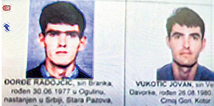 Na poternici je i Vukotić. U lažnim papirima on je Đorđe Radojčić, od oca Branka, rođen u Ogulinu 30. juna 1977. godine, sa prebivalištem u Srbiji, u Staroj Pazovi. Vukotić je, međutim, rođen u Kotoru 26. avgusta 1980. Otac mu je Vesko, koji je ubijen pod još nerasvetljenim okolnostima u aprilu ove godine ispred svoje kuće u Kotoru. Vukotić je u ekstradicionom pritvoru u Beogradu i čeka izručenje Crnoj Gori, čemu se on, inače, protivi.