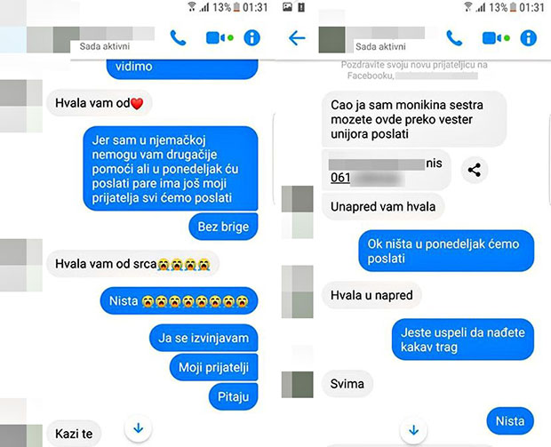 - Ćao, ja sam Monikina sestra, možete ovde preko "Vestern juniona" da uplatite - napisala je ona.