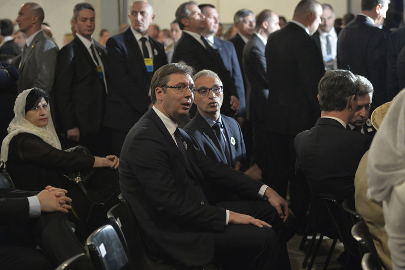 Vučić je bio i u središtu pažnje reditelja televizijskog prenosa, pa je kad god bi se pomenula reč "genocid" kamera državne televizije BiH bila usmerena prema srpskom premijeru. Vrebali su njegovu reakciju.
