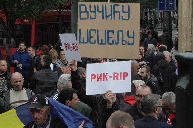 Protestu ispred sedišta RIK-a u zgradi Narodne skupštine, koji su organizovali koalicija DSS-Dveri, Demokratska stranka, pokret Dosta je bilo i koalicija Socijaldemokratska stranka-Liberalno demokratska partija-Liga socijaldemokrata Vojvodine, a saobraćaj u Ulici kralja Milana i na Terazijama bio je zaustavljen, prenosi agencija Beta.