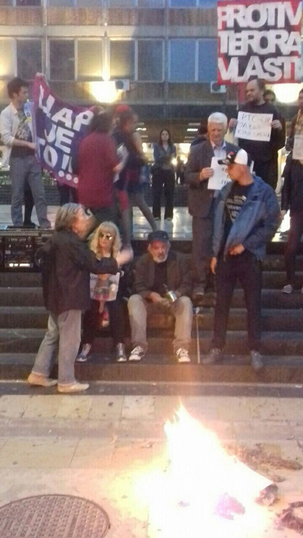 STOTINAK demonstranata i večeras se okupilo u Beogradu na protestu "Protiv diktature" a zborno mesto bila je zgrada Rektorata Univerziteta.