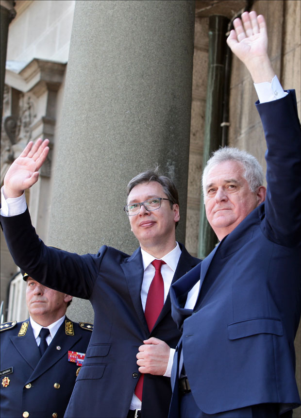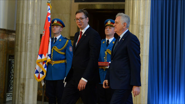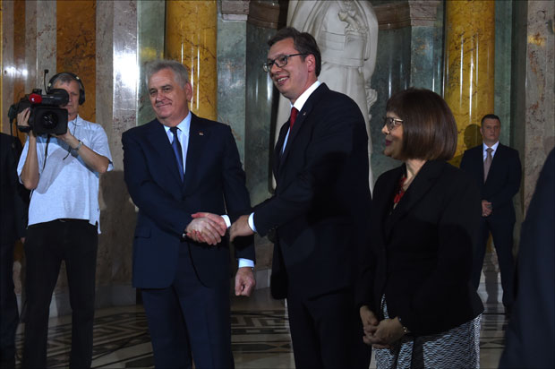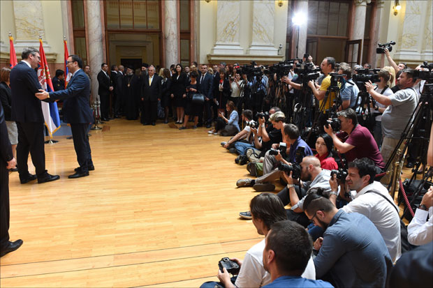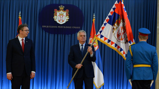 Predsedniku Republike Srbije Aleksandru Vučiću dužnost je predao dosadašnji šef države Tomislav Nikolić na svečanosti u zgradi na Andrićevom vencu.U svečanoj sali zgrade Predsednika, Nikolić je Vučiću predao standartu, koju je Vučić poljubio, i pečat, simbole predsednika Republike.