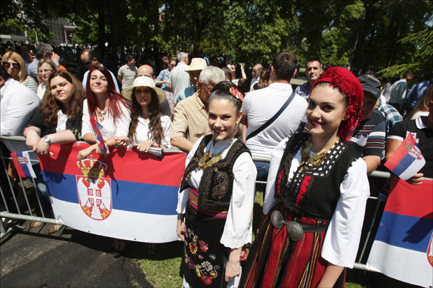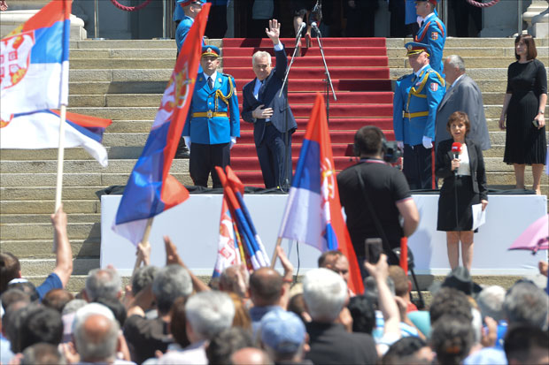 Predsednika Republike Aleksandra Vučića, nakon što je položio zakletvu u Narodnoj skupštini, dočekali su okupljeni građani koji su se od prepodnevnih časova okupljali kako bi mu čestitali novu dužnost.Vucić je prošetao, razgovarao i pozdravljao se sa građanaima, i kroz špalir gardista VS i mladih u narodnim nošnjama.