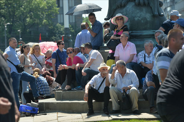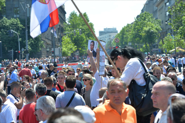 Okupljeni na Trgu Republike u Beogradu, koji su se okupili na poziv Pokreta slobodnih građana Saše Jankovića, a povodom stupanja na dužnost novog predsednika Srbije Aleksandra Vučića, protestuju protiv vlasti, formirali su kolonu i kreću u šetnju preko Terazija, pored Skupštine do zgrade RTS...
