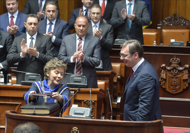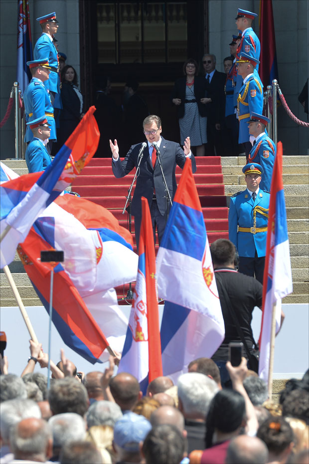 Predsedik Srbije Aleksandar Vučić, na početku je obraćanja u skupštini, a nakon polaganja zakletve, rekao da ne može da nađe reči i objasni i nadu i strah koje ga obuzimaju, jer preuzima dužnost predsednika Srbije ."Zam da su mi za to da budem predsednik potrebna dela, a da će konačni sud biti izurečene kad budem napuštao ovu dužnost, ali želim da zahvalim svim prethodnim predsednicima, posebno Tomislavu Nikoliću, jer je imao hrabrosti da podrži jedino ispravne ali teške mere vlade", rekao je Vučić.