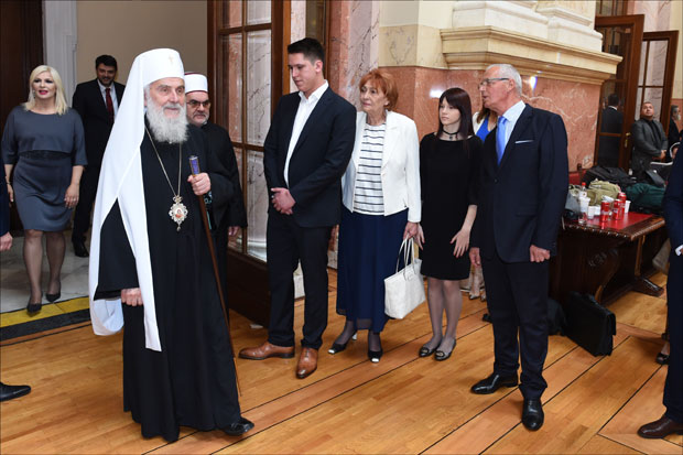 Reporteri "Novosti" javljaju da su u Skupštini i patrijarh srpski Irinej, predsednik i premijerka Republike Srpske, Milorad Dodik i Željka Cvijanović....