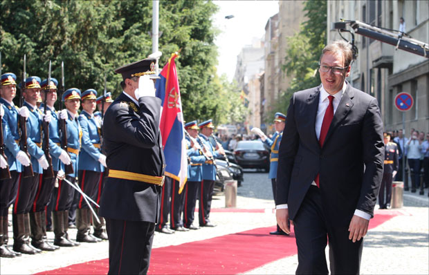 Vučić je tokom trogodišnjeg mandata premijera govorio da je članstvo Srbije u EU strateški cilj i u isto vreme jačao veze sa tradicionalnim saveznikom Rusijom koja je pristala da snabde srpsku vojsku borbenim avionima i tenkovima, što je, kako ocenjuje AP, povećalo tenzije na Balkanu.