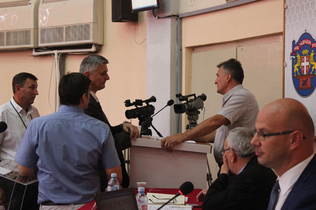 Trifunović je odmah po izlaganju predsednice Saveta za statut grada Branke Pavlović o novom poslovniku, otvorio pretres u načelu, ne dozvoljavajući odbornicima Dveri da reklamiraju povredu poslovnika. Oni su negodovali, blokirajući govornicu i sto za kojim sedi predsedavajući.