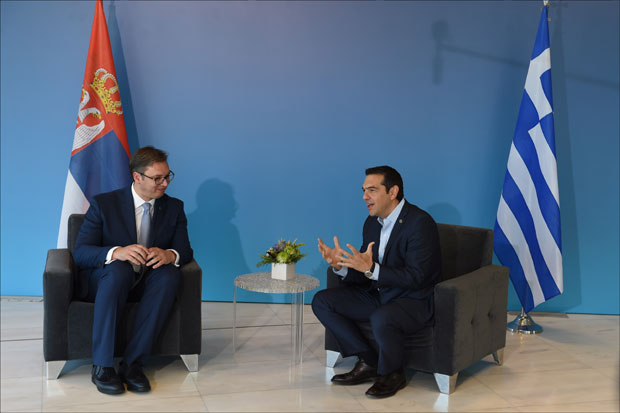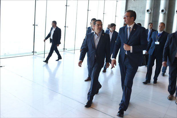 Predsednik Srbije Aleksandar Vučić i premijer Grčke Aleksis Cipras sastali su se u četiri oka na sastanku koji je trajao duže od planiranih sat vremena, tokom kojeg su usaglasili tekst zajedničke Deklaracije.