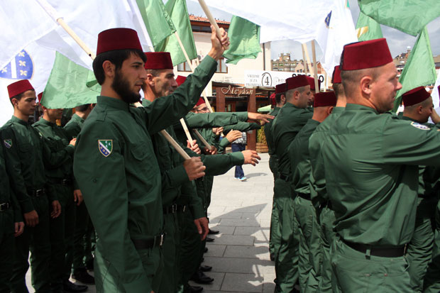 Funkcioneri Ugljaninove SDA učestvovali su 2014. u zlokobnom maršu aktivista IZ u zelenim uniformama muslimanske milicije iz Drugog svetskog rata.