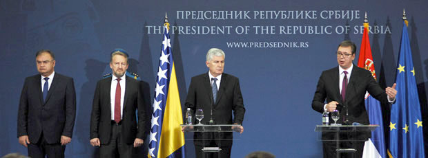 Prethodno je predsednik Srbije Aleksandar Vučić razgovarao više od sat vremena sa članovima Predsedništva BiH, bošnjačkim Bakirom Izetbegovićem, srpskim Mladenom Ivanićem i hrvatskim Draganom Čovićem.