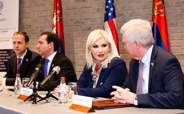 „Američke kompanije ne samo da zapošljavaju skoro 20.000 radnika u našoj zemlji, već su do sada investirali blizu četiri milijarde dolara u Srbiju i više od jedne milijarde donirali kroz program razvojne pomoći“, istakla je ona.