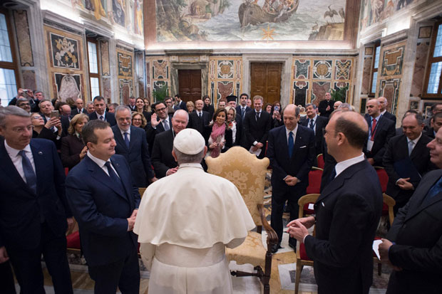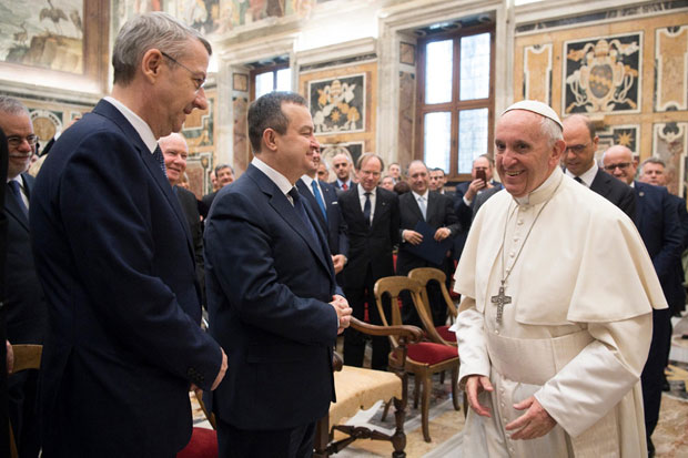 Prvi potpredsednik Vlade i ministar spoljnih poslova Ivica Dačić prisustvovao je audijenciji kod pape Franciska, organizovanoj za šefove delegacija učesnika Konferencije o odgovornosti država, institucija i pojedinaca u borbi protiv antisemitizma u regionu OEBS-a.