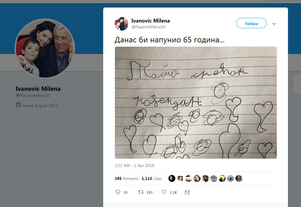 UBIJENI lider Građanske inicijative "Srbija, demokratija, pravda" Oliver Ivanović rođen je na jučerašnji dan 1953. godine. Tim povodom njegova supruga Milena na "Tviteru" je napisala:
