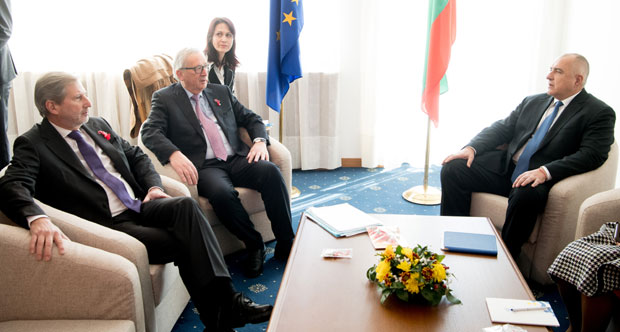 Johanes Han i Žan Klod Junker sa Bojkom Borisovim u Sofiji / Foto Tanjug
