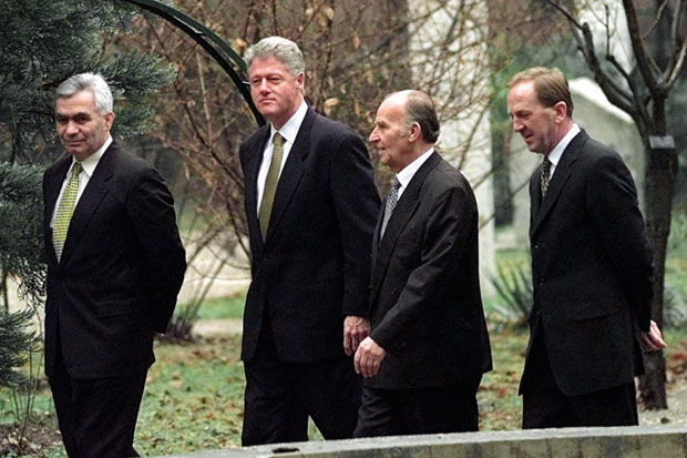 Momčilo Krajišnik, Bil Klinton, Alija Izetbegović i Krešimir Zubak u Dejtonu / Foto AP