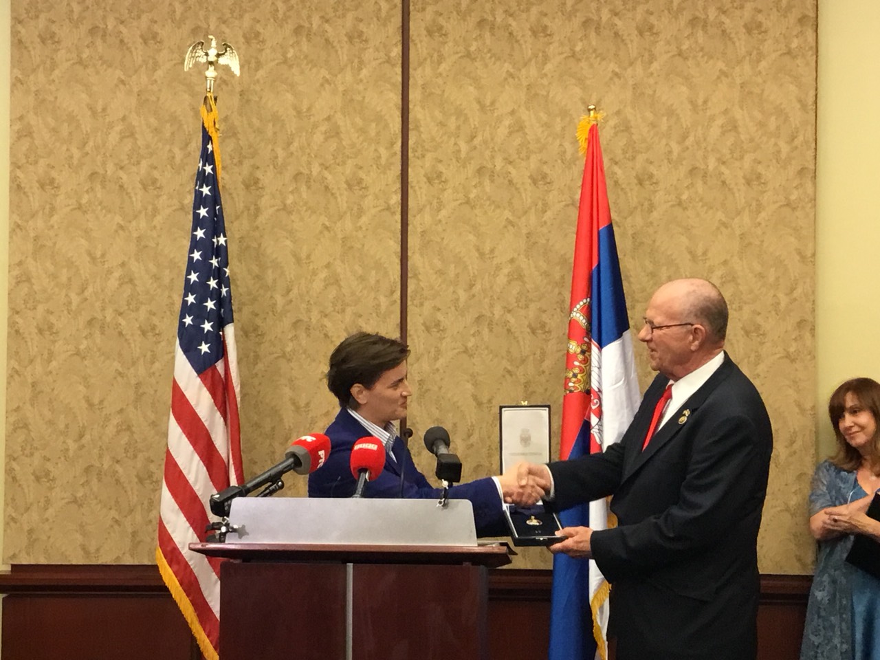 Premijerka Brnabić uručuje orden Tedu Pou; Foto: Vlada Republike Srbije