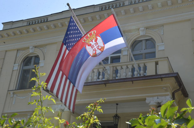 Šef diplomatije i ambasador SAD postavili srpsku zastavu na balkon rezidencije u Beogradu