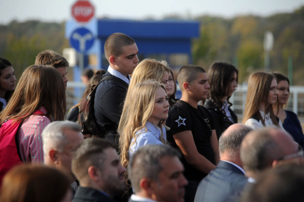 Predsednici Austrije i Srbije sa srednjoškolcima iz Zemuna. Predsednik Srbije zahvalio je Austriji i njenoj privrednoj komori što podržavaju razvoj dualnog obrazovanja u našoj zemlji
