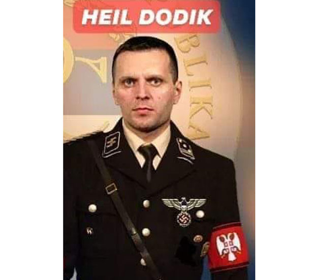BIVŠI komandant 4. bataljona bugojanske brigade tzv. Armije BiH Samir Sadiković na svom fejsbuk-profilu objavio je skandaloznu montiranu fotografiju, na kojoj je ministar MUP RS Dragan Lukač u uniformi nacističke Nemačke.