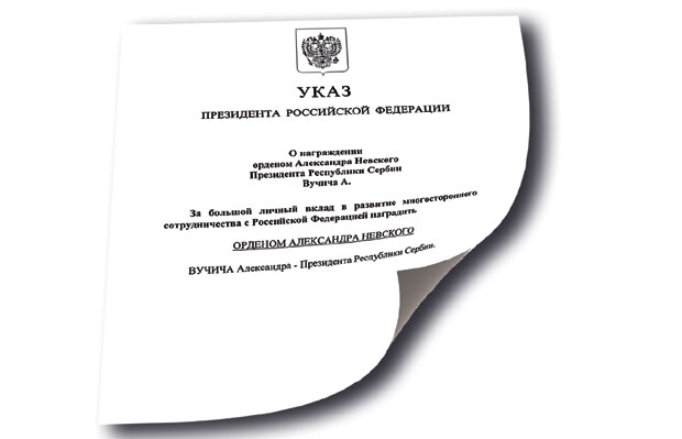 Orden Aleksandra Nevskog je velika cast za nasu zemlju i predsednika.