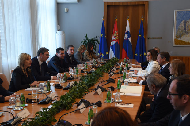 “Istovremeno želimo da glas Slovenije bude još snažniji u Briselu i EU i uvereni smo da to može da doprinese daljem razumevanju i potreba građana Srbije. Sve što možemo mi da uradimo o jačanju ekonomskih i trgovinskih veza, kulturnih, ali i u oblasti obrazovanja i svih drugih sfera je Srbija spremna da učini u potpunosti. Hvala na podstreku koji pružate na našem evropskom putu i stablizaciji prilika u regionu”, kazao je on.