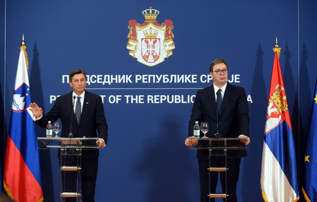 Predsednik Srbije Aleksandar Vučić je izjavio da je sa predsednikom Slovenije Borutom Pahorom razgovarao o unapređenju bilateralne saradnje dve zemlje na političkom i ekonomskom planu, o rešavanu pitanja KiM i zahvalio mu na podršci evropskom putu Srbije.
