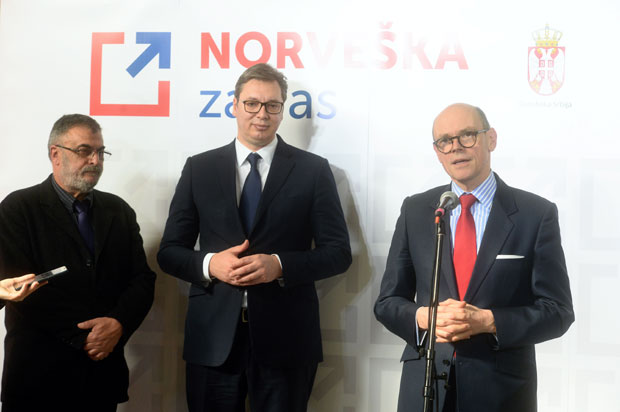 "Norveška je iskren prijatelj Srbije. Hvala što nas učite da radimo, što nas učite procedurama, što će značiti više ušteđenog novca i više bolje potrošenog novca u budućnosti", rekao je Vučić i zahvalio za pomoć Norveške koja traje od 2000. godine i koja iznosi 250 miliona evra kroz različite donacije.