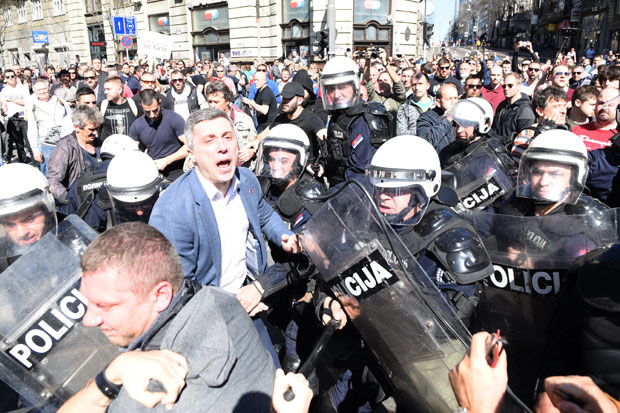 Čelnici SzS posle desanta na zgradu RTS danas pokušali da provale u sedište šefa države u centru Beograda