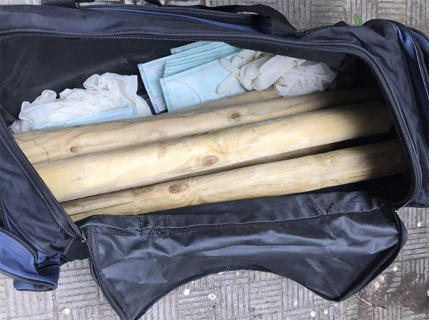 Osim drvenih palica u torbi su pronađene hirurške rukavice i maske koje je trebalo da posluže u skrivanju otisaka i napadača.