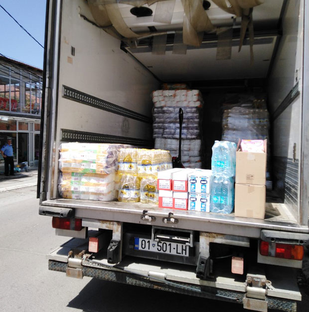 U kamionima su, kao i juče, osnovne životne namirnice - brašno, ulje, so, flaširana voda i sredstva za higijenu.