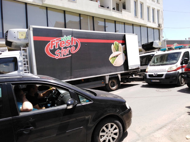 Vozači koji su dovezli kamione nisu želeli da kažu ko ih je i zbog čega poslao, a na terenu smo se uverili da nije bilo zainteresovanih za kupovinu namirnica.