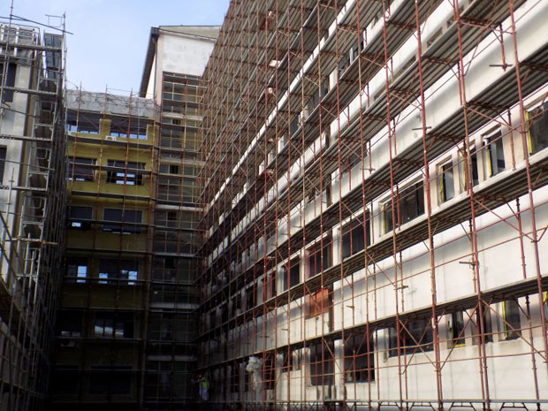 "Kada se završi fasada i stolarija, oluci i drugo, idemo i na unutrašnji deo", rekao je Vučić tokom obilaska bolnice u Leskovcu.