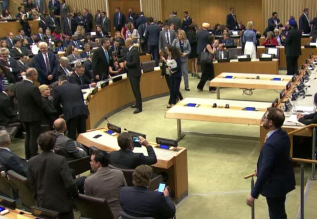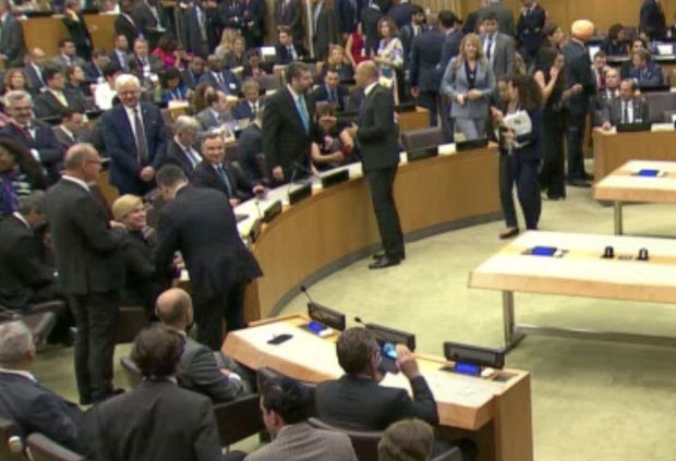 Na zvaničnom sajtu UN, naime, objavljen je snimak na kojem se vidi kako ministar spoljnih poslova Srbije Ivica Dačić razmenjuje pozdrave sa predsednicom Hrvatske Kolindom Grabar Kitarovć u sali