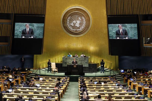 Predsednik Srbije Aleksandar Vučić rekao je danas u Generalnoj skupštini UN da je izgradnja autoputeva i povezivanje u regionu prilika da susedi na Balkanu budu bliži, kako bi se bolje razumeli i upoznali, ali i da će za budućnost regiona biti važan odnos sa velikim silama.