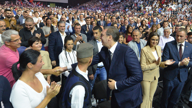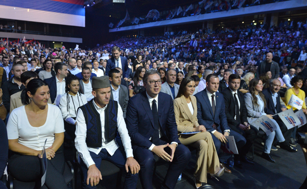 "Neće nam Amerikanci braniti da nam Rusi budu prijatelji, niti Istok da nam Evropljani budu prijatelji. Mi ćemo da se borimo za srpski interes. Srbija je broj jedna i srpski interes i ništa drugo nije važno", istakao je Vučić što je propraćeno aplauzom.