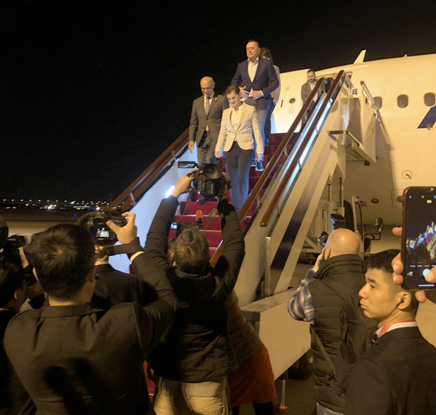 Premijerki je na aerodromu u Šangaju priređen svečani doček, a srpsku delegaciju dočekao je zamenik gradonačelnika ovog grada Čen Kun i ambasadorka Kine u Srbiji Čen Bo.