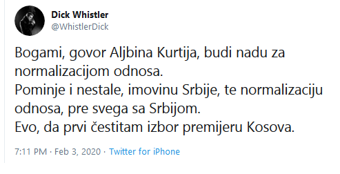 Evo, da prvi čestitam izbor premijeru Kosova, napisao je Trifunović
