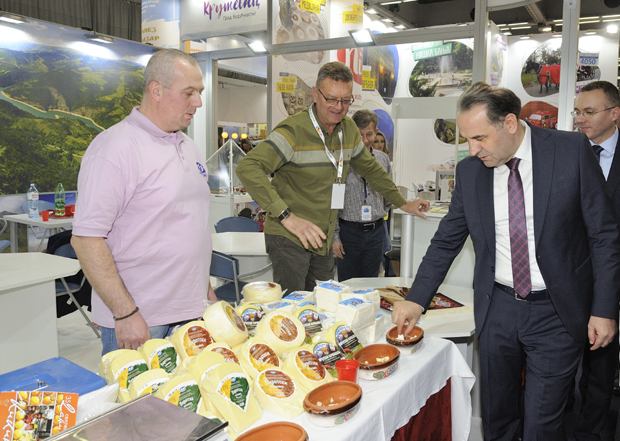 Ljajić nije mogao da proba baš sve iz bogate ponude domaćih vina, kačkavalja, kobasica, ali pirotske sireve nikada ne preskače, pa se poduže zadržao na štandu s ponudom iz ovih krajeva Srbije.