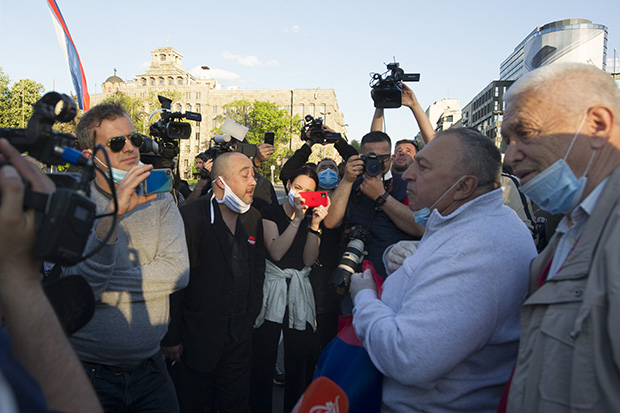 Dragan Đilas i Sergej Trifunović organizovali su skup ispred Narodne skupštine i tom prilikom Trifunović je snimao i provocirao starije građane koji su šetali centrom grada.