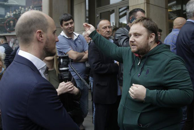 Situacija kod demokrata SVE NAPETIJA: Lutovčevo obezbeđenje ne da Šutanovcu da prođe (FOTO)