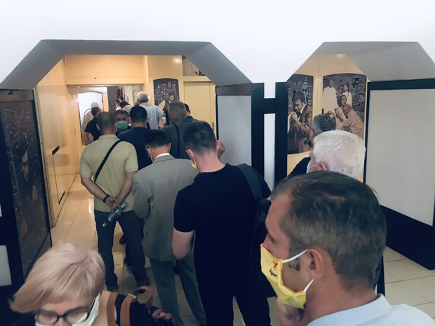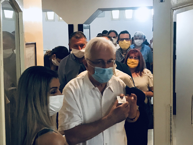 Sa sednice u Domu omladine, na platnu iza su članovi koji učestvuju preko zoom-a.