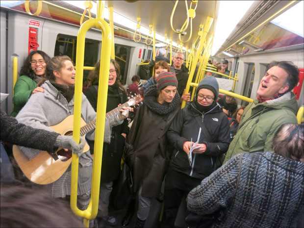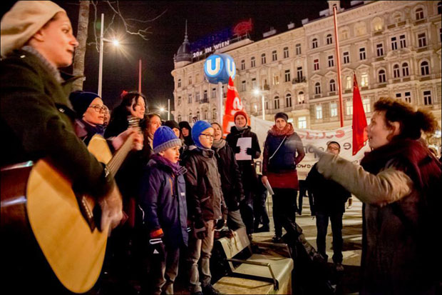 JEDNOM do dva puta godišnje organizujemo "pravi" koncert hora, a ostali nastupi su uglavnom u okviru akcija kao podrška različitim inicijativama i borbama - kaže naša sagovornica. - Ponekad se vežemo i uz prigodne izložbe, ali najredovnija bina nam je - ulica. Volimo da zapevamo spontano, što dalje od formalne koncertne postavke. Jedna od meni najdražih akcija je javna gradska turneja, svake godine 29. novembra. Tada, najčešće po ciči zimi obilazimo nekoliko mesta u Beču značajnih za našu radnu migraciju - železničke i autobuske stanice, predvorja institucija...
