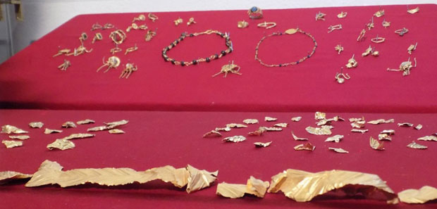 MEĐU pronađenim predmetima su i pehari, šolje, zdele, tanjiri, oko 700 komada raznog novca i veliki broj listića od zlata koji su najverovatnije služili kao ukras na glavi i odeći. Sav nakit od zlata pronađen je u grobovima sa spaljenim pokojnicima, što govori da potiče iz drugog, odnosno trećeg veka naše ere.