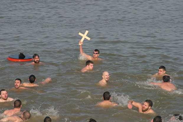 CRNA GORA: Podgoričanin Ivan Kukuličić prvi je doplivao do bogojavljenskog krsta koga je mitropolit crnogorsko-primorski Amfilohije u utorak bacio u reku Moraču.