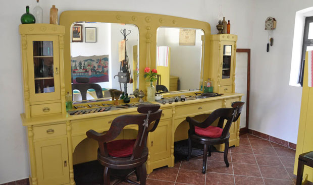 VRANjEVAČKA familija Jager darivala je muzeju kompletnu berbenicu s kraja 19. veka. Sve je originalno - od raznih britvi, kožnih oštrača, bočica sa kolonjskom vodom, pa do ogledala od brušenog stakla, stolica na kojima se moglo podešavati uzglavlje... Deo inventara je i paravan iza koga se nalazi umivaonik sa rezervoarom za vodu, držač za novine, kalendar... kao da je sve spremno za prepodnevno brijanje... Na zidu je i majstorsko pismo. Majstor nije bio običan berberin, imao je dozvolu i da izvadi pokoji zub, na šta jasno ukazuje mesingani disk na berberskoj reklami.